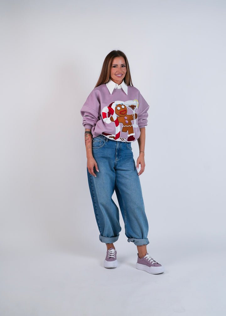Mikina, která okamžitě přitáhne pozornost – díky mega 3D výšivce Perníčka, který si užívá svátky přesně tak, jak by měl: s cukrovou hůlkou v jedné ruce a drinkem v druhé.
