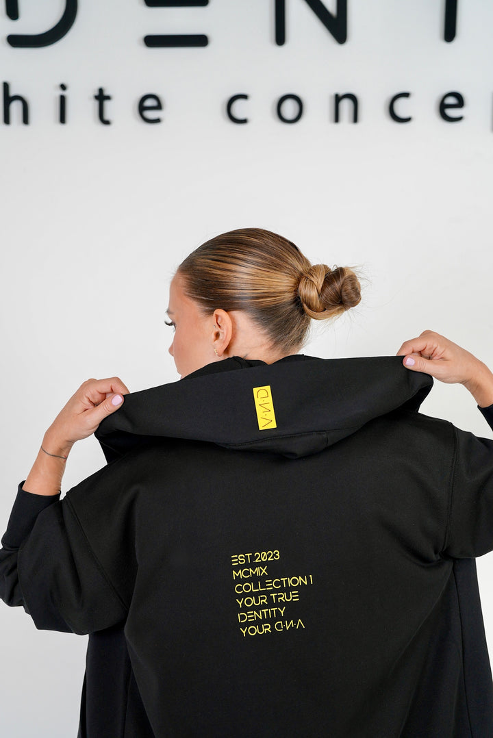 Women's zip-up hoodie from the significant IDENTITY collection with a medium weight represents a unique timeless style and comfort. IDENTITY knitwear is very pleasant to the touch, characterized by the highest quality of workmanship and dense knitting. The material composition of the fabric consists of a high proportion of premium cotton and a smaller proportion of polyester, thanks to which the sweatshirt keeps its shape and does not lose its color even after multiple washings.